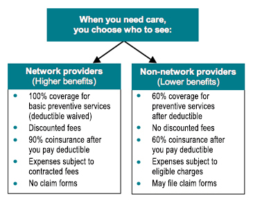 1. The plan pays higher benefits when you use network providers (90% after you meet your deductible for network providers and 60% after you meet your deductible for non-network providers).