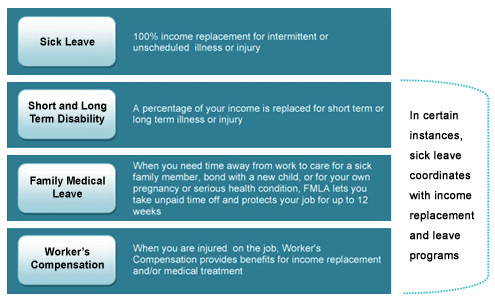 If you become ill or injured, sick leave may be your first line of defense, but you have other Company-sponsored and government programs that work with sick leave. In other words, you will not need to use all of your sick leave if you are also eligible for other benefits.