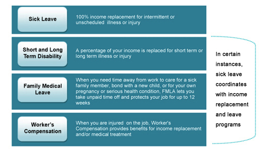 If you become ill or injured, sick leave may be your first line of defense, but you have other Company-sponsored and government programs that work with sick leave. In other words, you will not need to use all of your sick leave if you are also eligible for other benefits.